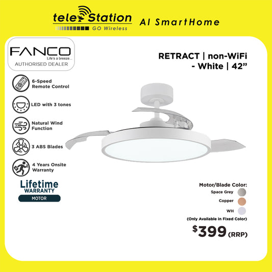 Fanco RETRACT Ceiling Fan with Light (WiFi or non-WiFi)